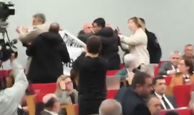 İzmir Büyükşehir Belediye Meclis oturumunda Basmane Çukuru ile ilgili eylem gerçekleştirildi.