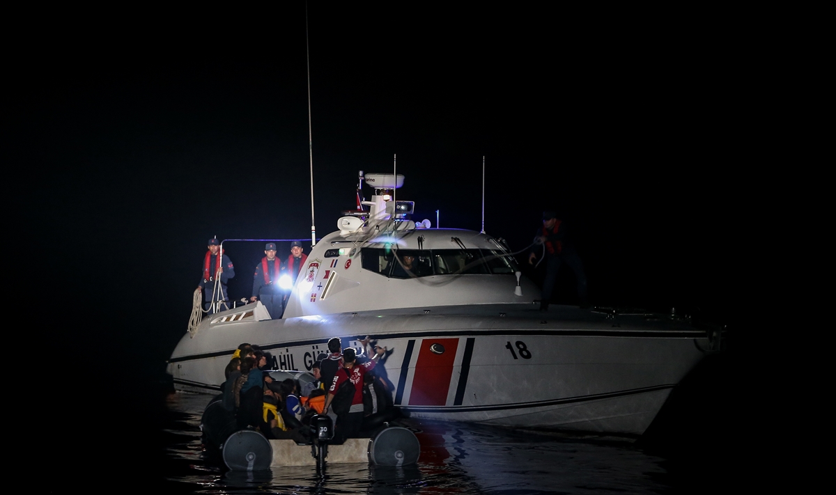 Su alan bottaki yabancı uyrukluların Sahil Güvenlik botuna