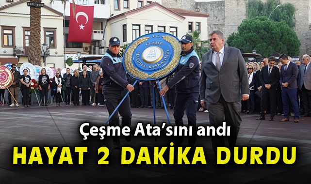 Çelenk sunma töreninin ardından saat 09.05’de çalan sirenler ile birlikte 2 dakikalık saygı duruşu yapıldı. Saygı duruşuna yoldan geçen vatandaşlar da eşlik etti. Tören sonrası Çakabey Kültür Merkezi’nde Kaymakamlık tarafından düzenlenen anma programı yapıldı.10 Kasım Atatürk’ü anma etkinlikleri kapsamında akşam saat 20.00’de Çeşme Belediyesi tarafından Aya Haralambos Kilisesi’nde bir konser düzenlenecek. Çeşme Belediye Başkanı M. Ekrem Oran, Ege Üniversitesi Devlet Türk Musikisi Konservatuarı Topluluğu “Sevdiği Şarkılarla Atamızı Anıyoruz” Dans gösterileri ve Konseri tüm vatandaşları davet etti.