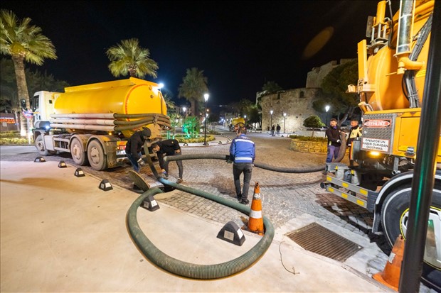 İZSU Genel Müdürlüğü ekipleri, Çeşme’de turizm sezonu hazırlıkları kapsamında Musalla Mahallesi’ndeki kanalizasyon hatlarında temizlik çalışması yürütüyor. Çeşme Marina olarak bilinen ve ilçenin ana arterlerinden olan bölgede, temizliğin kısa sürede tamamlanması ve trafiğin sekteye uğramaması için 6 ekip eş zamanlı olarak 7 gün 24 saat çalışıyor.