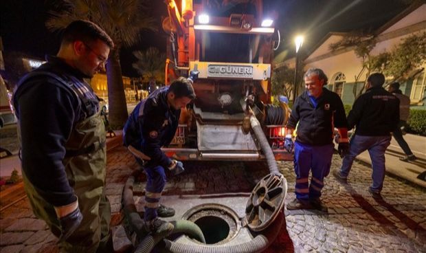 Çalışmalara ilişkin bilgi veren İZSU Çeşme Teknik Birimi Amiri Turgay Toksoy, “Musalla, İnönü, Dalyan, 16 Eylül ve Sakarya mahallelerimizin atık sularını terfi istasyonuna ileten kanalizasyon hattında temizlik yapıyoruz. Çalışmalarımızın amacı, taşkın ve kokunun önüne geçmek. Çeşme Marina bölgesi, işletmelerin yoğun olduğu; dolayısıyla evsel atığın da fazla olduğu bir bölge. Burada yürüttüğümüz temizlik çalışmalarımızla, hat içerisinde biriken evsel atıkları bertaraf ediyoruz” dedi.