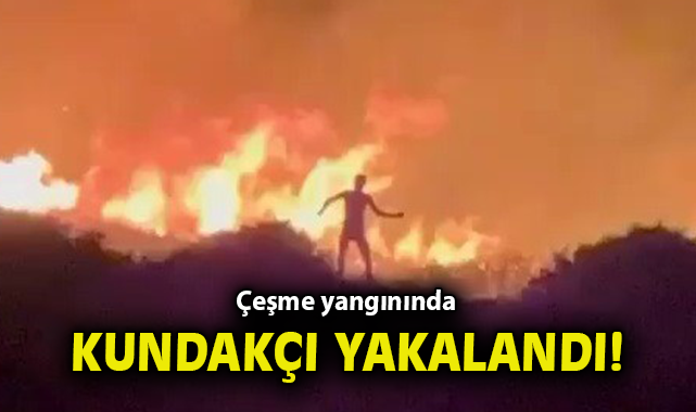 İzmir’in Çeşme ilçesinde dün gece saat 23.00 sıralarında çıkan yangında kundakçı olduğu belirlenen K.Ç. şüpheli gece saatlerinde olay yerinde yakalandı. Alanı kundakladığı belirlenen K.Ç.’ye ait olduğu ifade edilen görüntüler ortaya çıktı. Görüntülerde K.Ç.’nin alevler arasında dolaştığı ardından da kaçtığı anlar yer aldı.