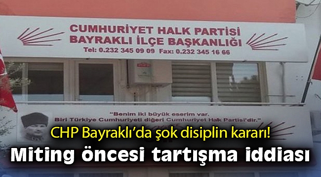 ÖNCÜŞEHİR - CHP Bayraklı İlçe Başkanı Didem Gültekin’in, CHP İzmir İl Kadın Kolları yönetim kurulu üyesi ve 3 dönem CHP Bayraklı Kadın Kolları Başkanlığı görevini yürüten Zeliha Avar’ı disipline sevk ettiği ifade edildi.