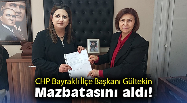 Başkan Didem Gültekin, yeni yönetimiyle birlikte bugün Bayraklı İlçe Seçim Kurulu'na giderek mazbatasını aldı.