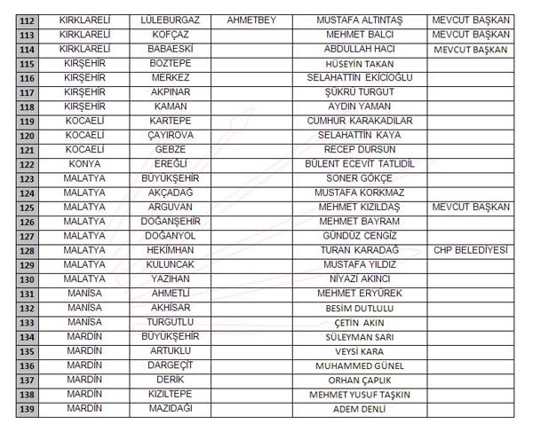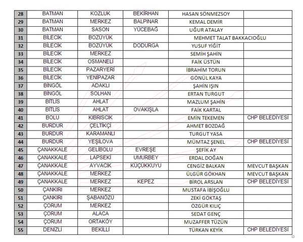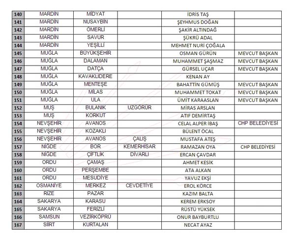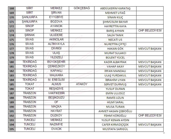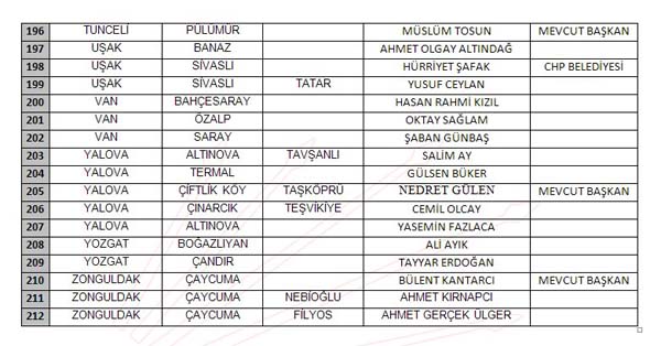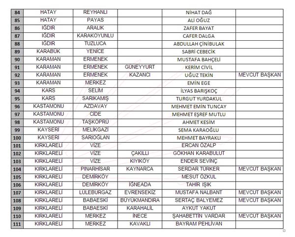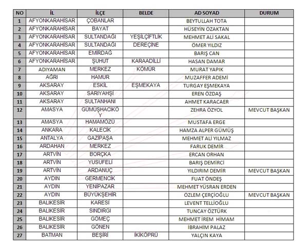 İŞTE YAYINLANAN TAM LİSTE: