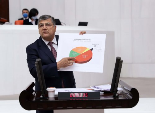 “200 MİLYARLIK BORCUNUN SADECE 900 MİLYON LİRASI YAPILANDIRILIYOR”Çiftçilerin Tarım Kredi Kooperatiflerine olan borçlarıyla ilgili düzenlemeyi eleştiren Sındır, “çiftçilerimizin borcunun yaklaşık yüzde 20'si özel, yaklaşık yüzde 50'si kamu bankalarına. Kamu bankalarından, özel bankalardan aldığı borç nedeniyle ne ipoteği ne teminatı kalmamış çiftçinin, rehin de gösterecek bir durumu da yok. Tefeciye mahkum kalıyor üretici. Tefecilere, aracılara, tüccara yaptığı borç da yaklaşık yüzde 25 civarında. Üreticimizin Tarım Krediye olan borcu da yüzde 5 civarında onun da yüzde 10'u bile olmayan, çiftçinin toplam borcunun binde 5'i bile olmayan bir borç yapılandırılıyor. İktidarı, çiftçimizin 200 milyarlık borcunun sadece 900 milyon lirasını yapılandırma kapsamına alıyor. İktidara buradan bir kez daha sesleniyorum; Çiftçi borçlarının binde beşini tefeci faiziyle yapılandırmak yerine, tamamını sıfır faizle yapılandırın. En azından önümüzdeki 2026'ya kadar faizlerinin silinerek yapılandırılması bizim önerimiz, teklifimizdir. Bu çiftçimizi en azından biraz olsun, rahatlatacaktır” dedi.“900 MİLYON LİRA BORCA UYGULANACAK FAİZ YÜZDE 18”Yapılandırılacak olan borcun Tarım Kredi Kooperatiflerine olan borcun tamamıymış gibi bir algı yaratıldığını ve tefeci faizi ile borçların yapılandırıldığını ifade ederek sözlerine devam eden Sındır, “sadece takibe alınmış borçlar kapsama alınıyor. Buna çiftçi sayısı açısından baktığımızda; Çiftçi Kayıt Sistemi'ne kayıtlı 1 milyon 800 bin çiftçi varken, sadece 21 bin 086'sı yani yüzde 1,2'si bu yapılandırma kapsamına giriyor. 900 milyon lira borca uygulanacak faiz Yüzde 18. Yüzde 6'sını devlet üstlenecekmiş. Buna tefeci faizi denir. Sayın AK PARTİ Genel Başkanının grup konuşmasında ‘Önümüzdeki dönem enflasyon oranını tek haneli rakamlara düşüreceğiz’ sözü ortadayken siz yüzde 20'ye varan oranda bir tefeci faiziyle çiftçiyi borçlandırıyorsunuz ve ‘Yüzde 30'unu da bu yılın ekim ayında peşin ödeyeceksin’ diyorsunuz. Devlet, tefecilik yapmaz; vatandaşının sırtından onu açlığa, yoksulluğa, sefalete ve hatta intihara kadar sürükleyecek şekilde zenginleşme derdine düşmez, düşmemelidir” dedi.“PANDEMİ DEĞİL, SARAY PANDOMİMİ”Esnafın perişan olduğunu, işçinin, memurun, emeklinin açlık ve yoksullukla mücadele ettiğini; çiftçinin toprağını terk ettiğini, borçlarını ödeyememenin derdiyle; 10 milyona yakın işsizin can derdine düştüğünü söyleyerek sözlerini sonlandıran Sındır, “bıçak kemikte. Fakat saray iktidarı 5'li çeteye yapılacak yap-işlet-devret kamu-özel iş birliği garanti ödemelerinde 31 milyar lira için kılını kıpırdatmıyor ‘Bunları ödeyeceğim’ diyor. İstanbul Havalimanı'nın 2020-2021 kira bedelini, 18 milyar lirayı ertelemeyi bir kalemde gerçekleştiriyor. Milli Piyangoyu devralanlardan bir kalemde KDV'yi sıfırlayarak yaklaşık 18 milyar lira servet transferi yapıyor. Çiftçiye gelince ‘Yok’, esnafa gelince ‘Yok’. Kötü gidişe bahaneniz pandemi; fakat yaşadıklarımız ‘pandemi’ değil ‘saray pandomimi’ diyorum” dedi.