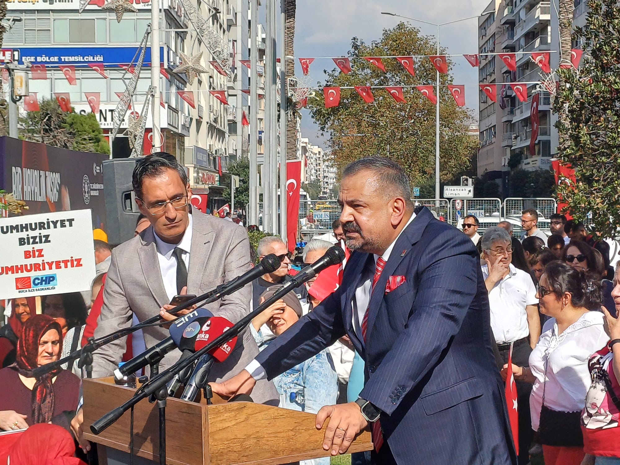 ÖNCÜŞEHİR - İzmir’de 29 Ekim Cumhuriyet Bayramı coşkusu katlanarak devam ediyor. Cumhuriyet Halk Partisi İzmir İl Başkanlığı da çelenk sunumu ve törenle Cumhuriyet Bayramı’nı kutladı.Programa İzmir Büyükşehir Belediye Başkanı Tunç Soyer, İlçe Belediye Başkanları, İlçe Örgütleri ve Başkanları, CHP İzmir Milletvekilleri ve çok sayıda partili katıldı.