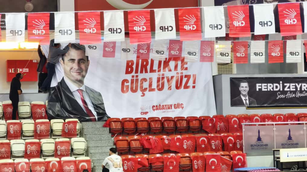 Çiğdem CANĞPOLAT GÜÇTEKİN / ÖNCÜŞRHİR - Cumhuriyet Halk Partisi İzmir'de kongre heyecanı yaşanıyor. Mevcut İl Başkanı Şenol Aslanoğlu'nun ev hapsinde bulunduğu süreçte genel merkez tarafından adaylığı geri çekilmişti.31 Mart seçimlerinde Aliağa Belediye Başkan adayı olan ve partisi adına başarılı bir performans çizen Çağatay Güç genel merkezi tarafından CHP İzmir İl Başkanlığı adayı olarak gösterilmişti. Güç'ün tek aday olarak seçimlere girmesi beklenen süreçte ise salon seçimlere hazır durumda.