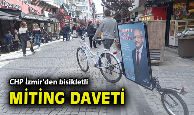 14 Mayıs'ta gerçekleştirilecek Cumhurbaşkanı ve 28. Dönem Milletvekili Seçimleri öncesi çalışmalarını aralıksız sürdüren CHP İzmir İl Başkanlığı, kampanya yöntemleriyle de fark yaratıyor. CHP Lideri ve Millet İttifakı Cumhurbaşkanı Adayı Kemal Kılıçdaroğlu'nun 30 Nisan 2023 Pazar günü saat 15.30'da Gündoğdu Meydanı'nda gerçekleştireceği büyük buluşmayı İzmir'de herkesin duyması için her platformda davetler yapan CHP'liler, bisikletlerle en çevreci miting davetini gerçekleştirdi. Kentin işlek caddeleri ve meydanlarında çevreyi kirletmeden, gürültü kirliliği yaratmadan bisikletlerle yapılan miting daveti, büyük ilgi gördü. Büyük fark yaratan alternatif tanıtıma özellikle gençlerin ilgisi dikkat çekti.