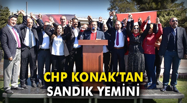 "31 MART PAZAR GÜNÜ YAPILACAK YEREL SEÇİMLERDE; MAHALLE, OKUL SORUMLUSU VE SANDIK GÖREVLİSİ OLARAK ÜSTLENDİĞİM BU KUTSAL GÖREVDE SEÇİM GÜNÜ SABAH 7'DE SANDIĞIMIN BAŞINDA OLACAĞIMA, BU ONURLU GÖREVİ SON OY SAYILANA, İMZALI TUTANAĞI ALANA KADAR MÜCADELE EDECEĞİME, CUMHURİYETİMİZİN KURUCUSU GAZİ MUSTAFA KEMAL'İN PARTİSİ, CUMHURİYET HALK PARTİMİZE, PARTİMİZİN OYLARINA, BÜYÜKŞEHİR BELEDİYE BAŞKANLIĞINDA TUNÇ SOYER'E, KONAK BELEDİYE BAŞKANLIĞINDA ABDÜL BATUR'A SAHİP ÇIKACAĞIMA ŞEREFİM ÜZERİNE AND İÇERİM. YAŞASIN CUMHURİYET, YAŞASIN MUSTAFA KEMAL ATATÜRK!"