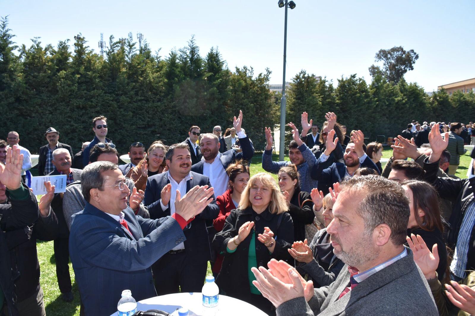 31 Mart yerel seçimlerinde, seçim günü sandıklarda görev yapacak olan sandık görevlileri, okul ve bina sorumlularıyla, Tarihi havagazı fabrikasında düzenlenen etkinlikte bir araya gelerek seçim günü yapılacak çalışmaların önemine dikkat çeken CHP Konak Belediye Başkan Adayı ve Millet ittifakının ortak adayı Abdül Batur, ‘Son ana kadar, sandıkların başından ayrılmak yok’ dedi. Batur, “Bu seçim her seçimden daha önemli. Yerelde kazanmak, genelde kazanmanın ilk adımıdır. Bize güvenen, sandığa giderek vatandaşlık görevini yerine getiren tüm vatandaşlarımızın oylarına sahip çıkmamız gerekiyor. Biz ‘Her Gün On Bin Adım’ anlayışıyla yola başladığımız seçim yolculuğumuza aynı hızla yağmur, çamur demeden devam ediyoruz. Fakat bu çalışmalarımızın yansıyacağı sandıklarımıza sahip çıkmak görevlerin en önemlisi. Hepimiz görevimizi, son oy pusulası sayılana, seçim neticeleneceği ana kadar görev yerlerimizi terk etmeden devam edeceğiz. Bu bizim için en önemli görevdir. Sandıklara sahip çıkmak bizim onurumuzdur. Şimdi 31 Mart günü gerçekleştireceğimiz bu kutsal görev için hep birlikte el ele vererek yemin edeceğiz” dedi. Başkan Batur’un 31 Mart yerel seçimlerinde, seçim günü sandıklarda görev yapacak olan sandık görevlileri, okul ve bina sorumlularıyla birlikte hep bir ağızdan yemin ettiler.