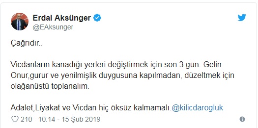 yaptı. Erdal Aksünger mesajında şunları ifade etti: