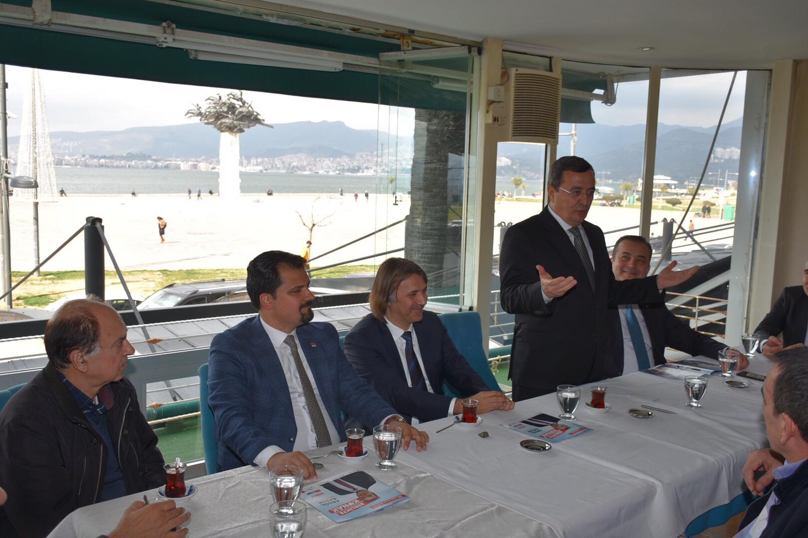 Toplantıda bir konuşma gerçekleştiren Kordon İş adamları Derneği Başkanı Ömür Şanlı, ‘CHP Konak Belediye Başkanı adaylığınız hayırlısı Olsun’ diyerek sözlerine başladı. Şanlı “İnşallah Bizlerde esnaf olarak bu dönem, hep beraber, 5 yıl boyunca, arkadaşlarımın da desteğiyle, hep beraber kordonu kalkındıracağız. Kordon'da güzel şeyler yapacağız. Kordon deyince şarkılara, şiirlere konu olmuş güzel kordonumuz geliyor ancak bizim aynı zaman yaşadığımız çok önemli sorunlarımız var. Ruhsat sorunumuz, denetim problemimiz, tenteli alanlarımız ve dış cephe tabelalarımız. Aslında çözülmeyecek sorunumuz yok. İnşallah sizinle beraber ve çok bu konuyu paylaşarak çözmeye çalışacağız. En çok yaşadığımız ve en büyük sıkıntımız, bütün ruhsat ve bunun gibi konuları Konak'tan hallediyoruz ama denetlemeyi Büyükşehir yapıyor. En büyük sorunumuz bu” dedi.