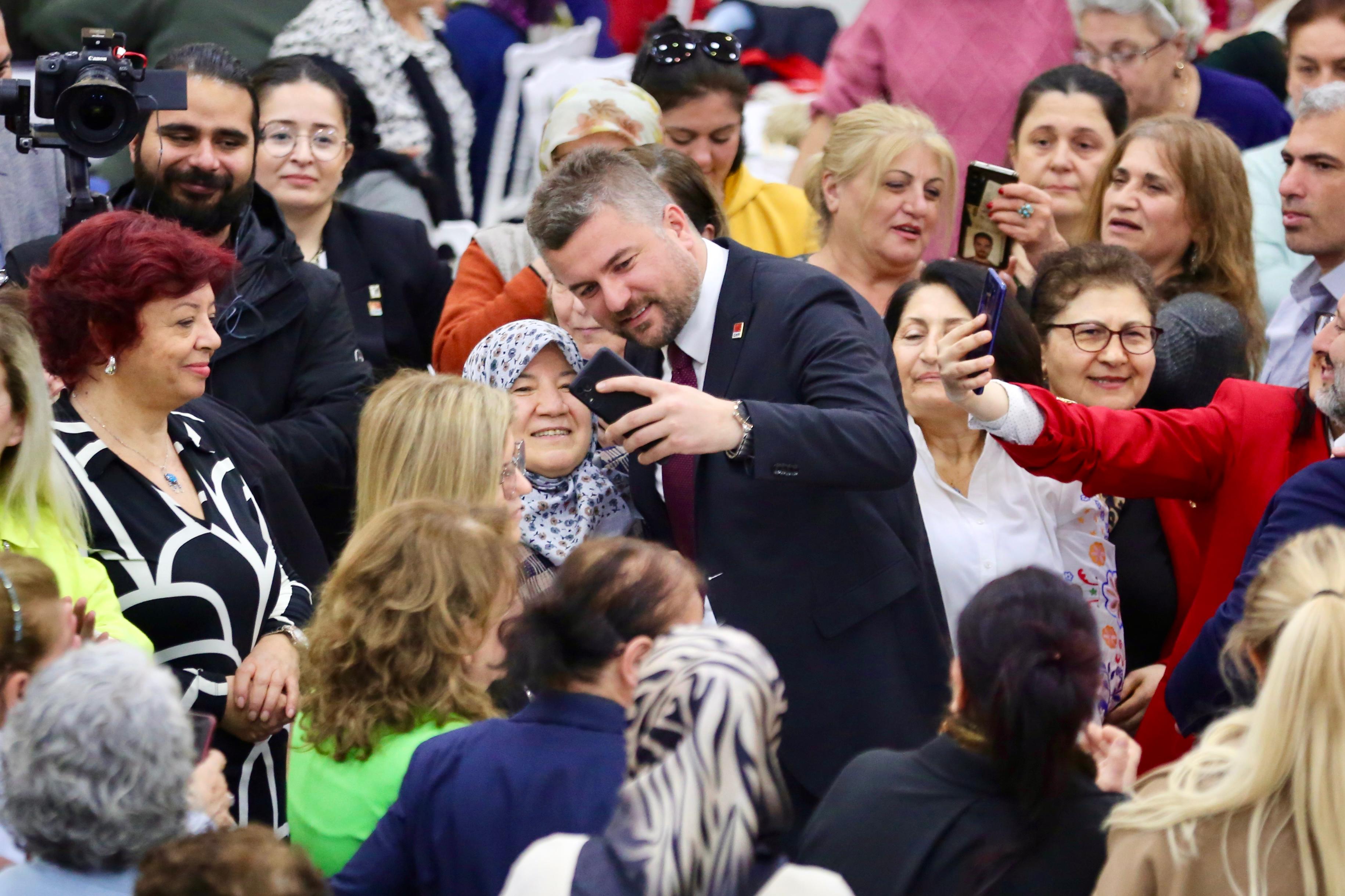 Kadınların yoğun ilgi gösterdiği toplantıda CHP Buca Belediye Başkan Adayı Görkem Duman, konuşmasına annesi Serap Duman'ın elini öperek başladı. Duman "Ben bu salonda bugün şunu görüyorum. Kız kardeşlerim, ablalarım, teyzelerim benim elimden tutmuşsunuz. Size söz veriyorum ben de bu eli sıkı sıkıya tutacağım ve hiç bir zaman bırakmayacağım" dedi.