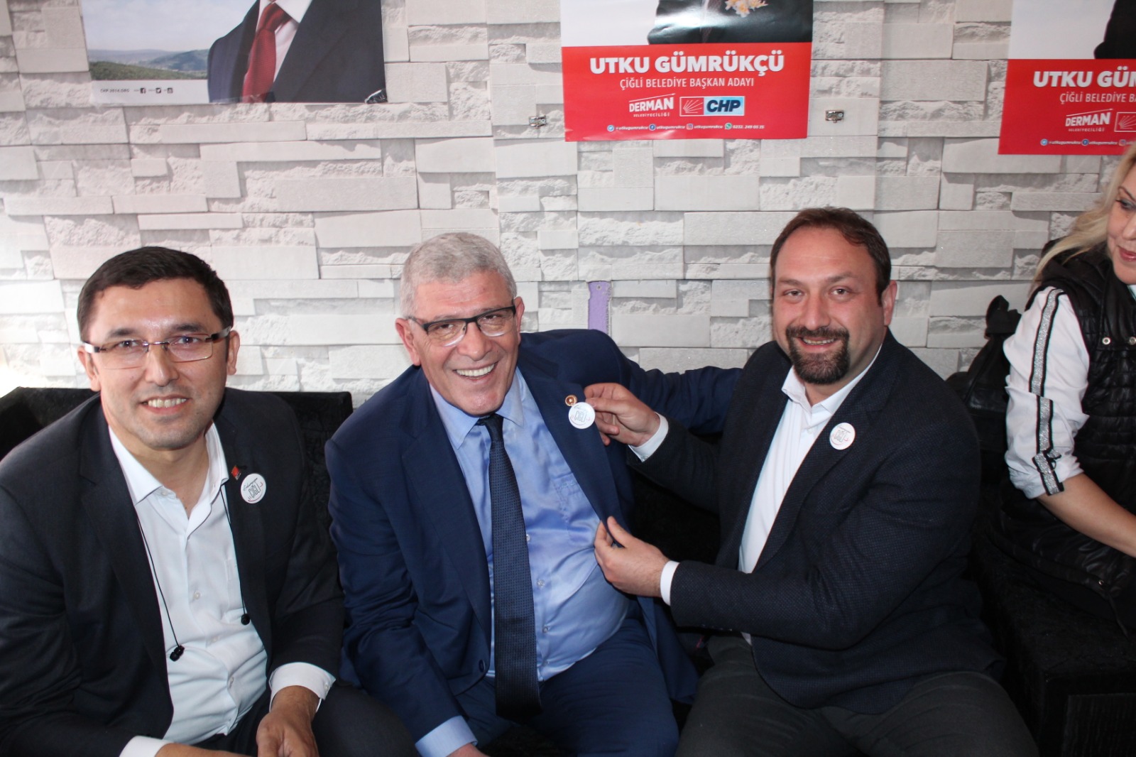 Ataşehir Mahallesi seçim ofisinin açılışından sonra, Millet İttifakı Çiğli Belediye Başkan Adayı Utku Gümrükçü, İzmir Milletvekili ve İYİ Parti Genel Başkan Yardımcısı Müsavat Dervişoğlu’na Gülümseyen Çiğli rozeti taktı.