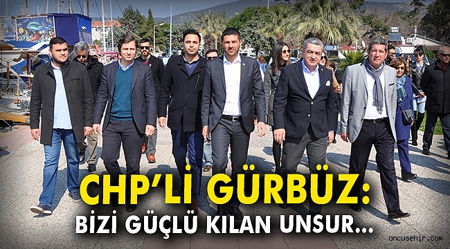 Cumhuriyet Halk Partisi'nin çok büyük bir aile olduğunu ifade eden Foça Belediye Başkan Adayı Fatih Gürbüz de, "Bugün seçim çalışmalarımıza katılıp bize destek olan, güç veren İzmir Milletvekilimiz Sayın Bedri Serter ile İzmir İl Başkanımız Sayın Deniz Yücel'e sundukları katkıdan dolayı teşekkür ediyorum. Bizi güçlü kılan unsur; Genel Başkanımız Sayın Kemal Kılıçdaroğlu'nun önderliğinde, üyelerimizden mahalle temsilcilerine, ilçe yöneticilerimizden il yöneticilerimize, ilçe başkanlarımızdan il başkanlarımıza ve milletvekillerimizden genel merkez yöneticilerimize varıncaya kadar el birliğiyle partimizin başarısı ve ülkemizin geleceği için çalışıyor olmamızdır" diyerek, bu birlikteliğin ve beraberliğin CHP'yi önce yerelde sonra genelde iktidara taşıyacağını söyledi.