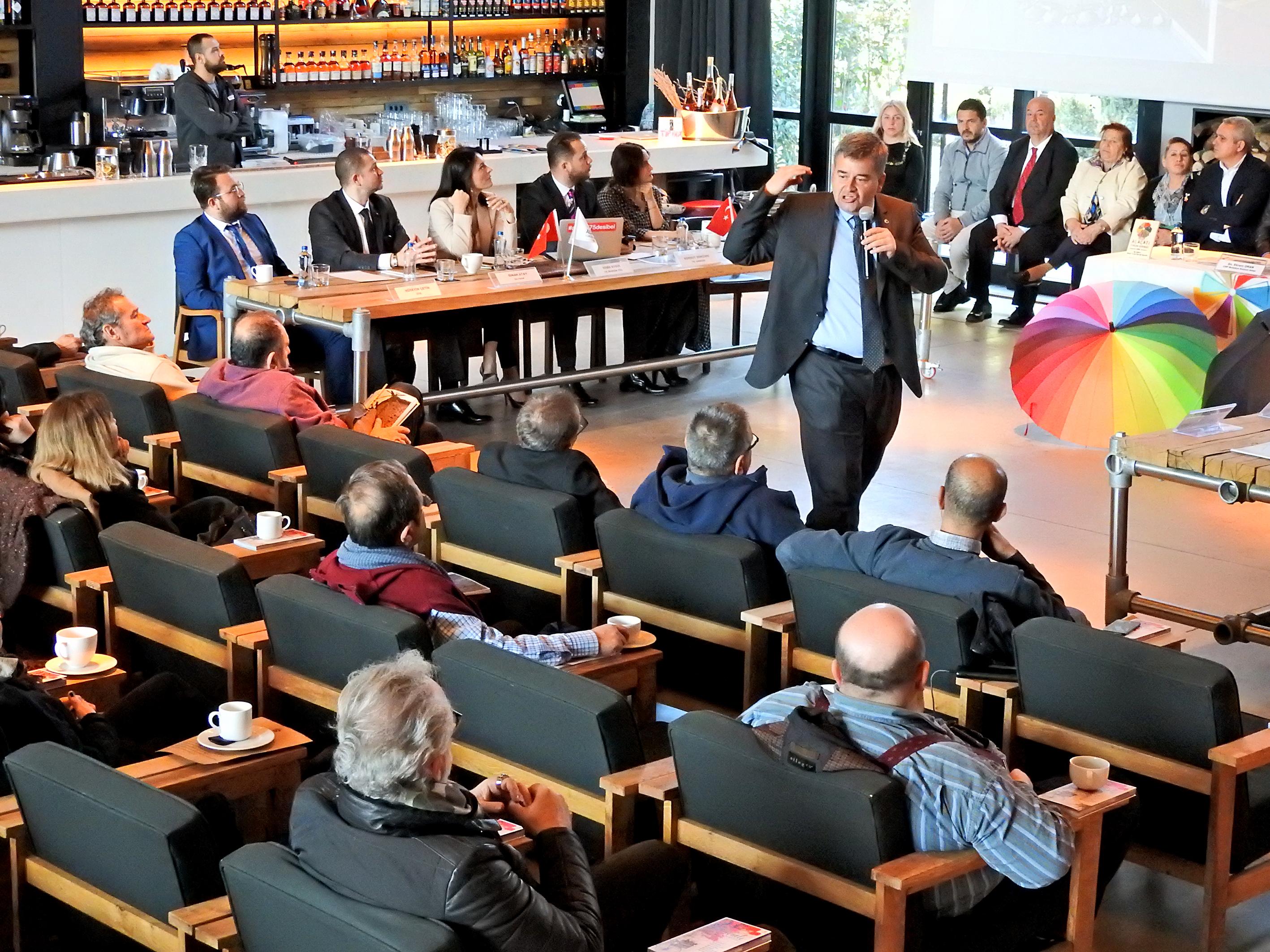 toplantıda projeleri hakkında ayrıntılı bilgi veren Çeşme Belediye Başkan Adayı