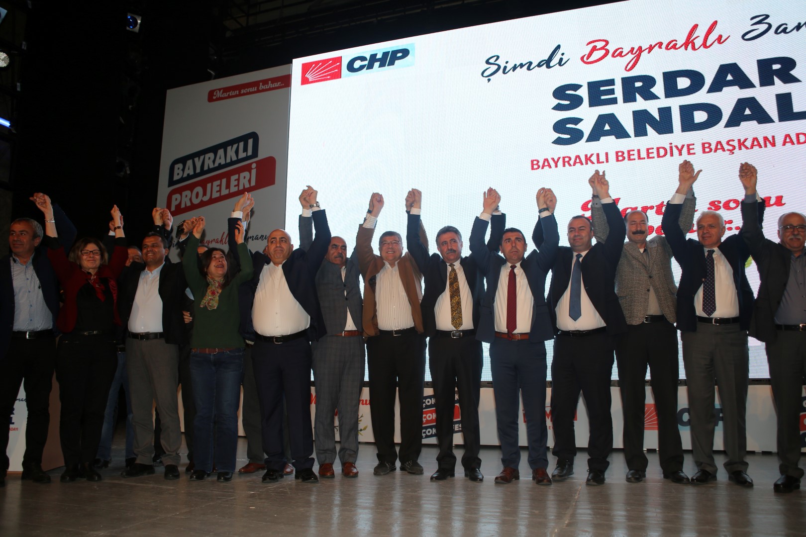 Tepekule Kongre Merkezi Anadolu Salonu’nda düzenlenen proje tanıtım toplantısına CHP İzmir milletvekilleri Ednan Arslan, Kamil Okyay Sındır, CHP Bayraklı İlçe Başkanı Cemalettin Alper, basın mensupları ve vatandaşlar katıldı. Bayraklı’nın gerek tarihi açıdan gerekse de yeni kent merkezi kimliği ile önem taşıdığını belirten Sandal “Amacımız daha güzel, daha yaşanabilir bir Bayraklı. Bu konuda biz dersimizi gerçekten çok iyi çalıştık. Bayraklı’nın makro sorunlarından mikro sorunlarına kadar tümünü yerinde görerek inceledik. İşin uzmanlarıyla konuştuk ve projelerimiz böyle oluştu. Bayraklı’nın dertlerine, sorunlarına hakimiz. Çözümü için de 7 gün 24 saat çalışacağımıza söz veriyoruz.”