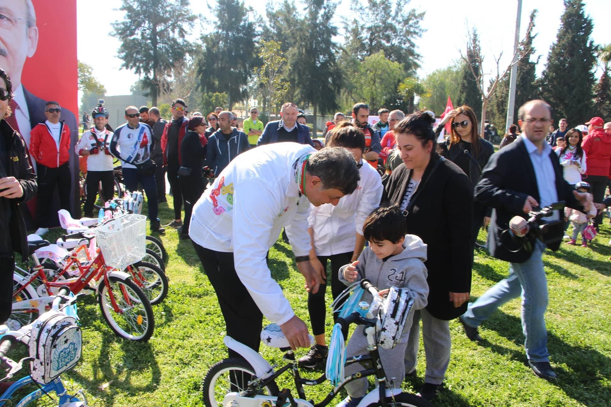 BİSİKOOP Başkanı Ahmet Çelikörs de, amaçlarının tüm ülkede bisiklet kullanımını artırmak olduğunu belirterek, "Başkan Adayı Sayın Tugay'a desteği için çok teşekkür ediyoruz. Önümüzdeki dönemde birlikte çok güzel projelere imza atacağımız şimdiden görülüyor. Kendisinin bu konuda çok duyarlı olması bizim için bir şans diye düşünüyorum. Daha önce olduğu gibi bundan sonra da çalışmalarımızı ve eğitimlerimizi sürdüreceğiz" şeklinde konuştu. Etkinliğin sonunda Tugay ve Çelikörs tarafından isimleri kura ile belirlenen 12 çocuğa bisiklet armağan edildi. Tugay etkinliğin ardından İzmir Büyükşehir Belediye Başkan Adayı Tunç Soyer ile birlikte önce sahilde güzel havanın tadını çıkaran vatandaşlarla sohbet etti, ardından Niğdeliler Federasyonu tarafından düzenlenen Elma Festivali'ne katıldı.