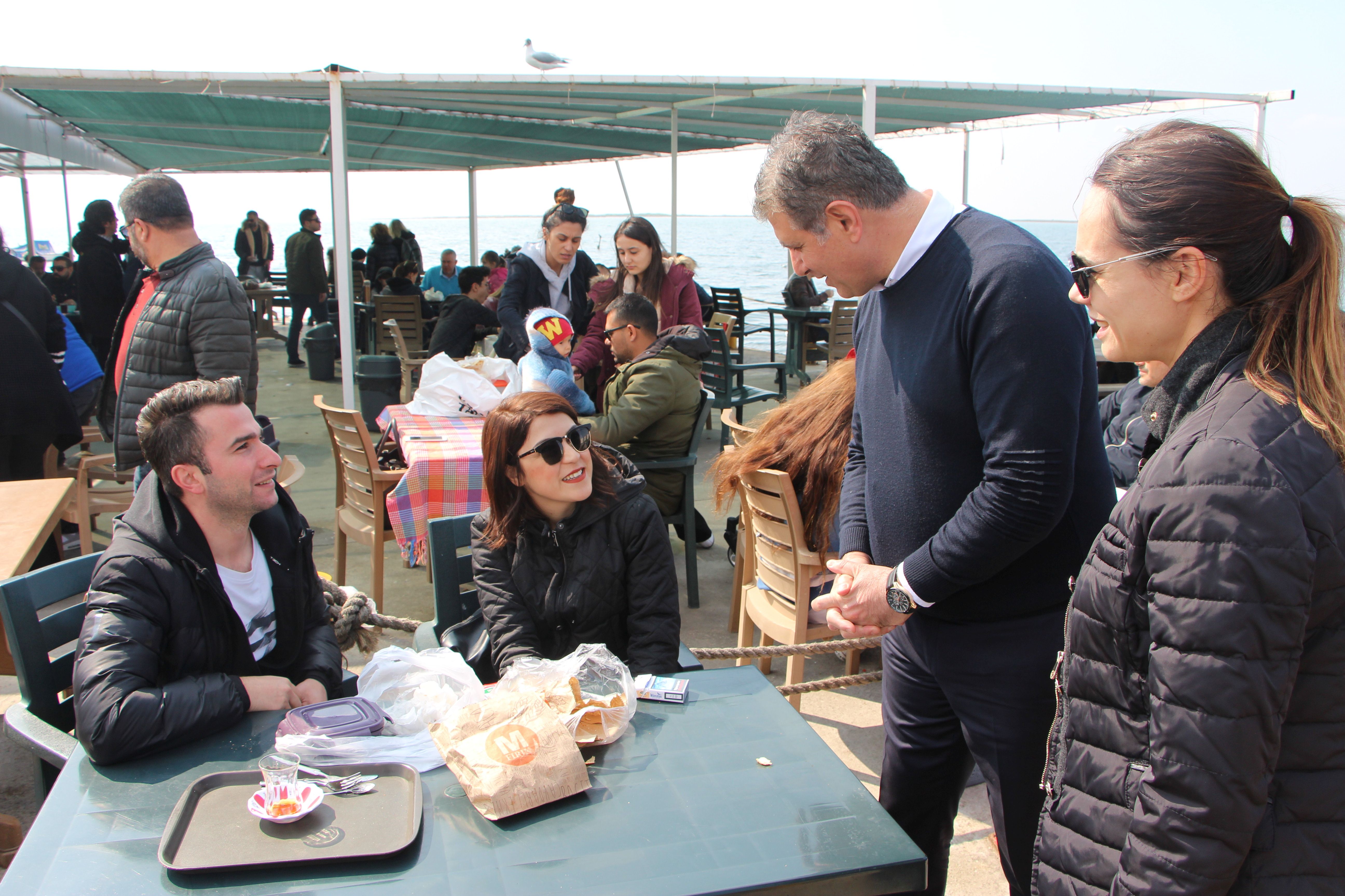 Seçim çalışmalarını aralıksız sürdüren Dr. Cemil Tugay, meclis üyesi adaylarıyla birlikte balıkçı barınağını ziyaret etti. Balıkçıların sorunlarını ve taleplerini dinleyen Tugay, daha sonra güzel havanın tadını çıkaran vatandaşlarla selamlaştı. Eşi Öznur Tugay'ın da eşlik ettiği Cemil Tugay, ilçenin sorunlarını bildiğini, 31 Mart'tan sonra çözümü için çalışacağını anlattı.