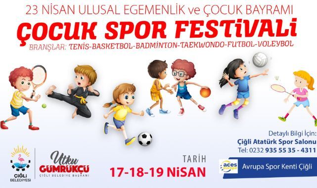 Çocuklara unutamayacakları bir 23 Nisan yaşatmak isteyen Çiğli Belediyesi, 17-19 Nisan tarihleri arasında gerçekleştirilecek 23 Nisan Çocuk Spor Festivali için hazırlıklarını tamamladı. Gençlik ve Spor Hizmetleri Müdürlüğü’nün organize edeceği festivalde ilçe belediyeleri ve özel kulüplerde spor yapan 12 yaş altı çocuklar basketbol, badminton, futbol, taekwondo, tenis ve voleybol branşlarında birbirleriyle mücadele edecek. Ataşehir Mahallesi’nde bulunan Atatürk Spor Salonu’nda düzenlenecek müsabakaların ardından toplu ödül töreni düzenlenecek.Gümrükçü: “Çocuklarımız bayramını doyasıya yaşayacak”23 Nisan Çocuk Spor Festivali hakkında değerlendirmelerde bulunan Çiğli Belediye Başkanı Utku Gümrükçü, “Ulu Önderimiz Gazi Mustafa Kemal Atatürk’ün dünya çocuklarına armağan ettiği 23 Nisan Ulusal Egemenlik ve Çocuk Bayramı’nı coşkuyla kutlamak için hazırlıklarımızı tamamladık. Ev sahipliği yapacağımız Çocuk Spor Festivalinde Çiğli ve çevre ilçelerden çocuklarımız altı farklı branşta kıyasıya mücadele edecek. Bizlerde onların bu coşkusuna eşlik edeceğiz. Yarınlarımızın teminatı olan çocuklarımıza eğitim, sanat, kültür, spor ve turizm alanında kendilerini geliştirebilecekleri bir ülke sunmak için çalışmaya devam edeceğiz” ifadelerini kullandı.