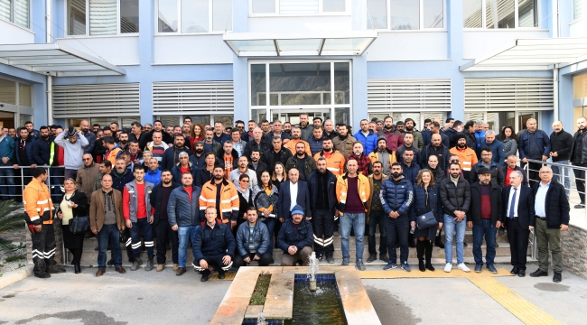 önce şantiye binasında görevli personelle başladı. Başkan Hasan Arslan, şantiye salonunda
