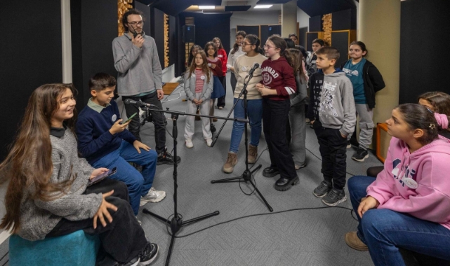 İzmir Çocuk Meclisi üyeleri, yarıyıl tatilinde kentin farklı noktalarında yer alan İzmir Büyükşehir Belediyesi birimlerini gezerek hem bilgi ediniyor hem de keyifli vakit geçiriyor. Genç müzisyenler için açılan ücretsiz müzik stüdyosu uygulaması Stüdyo Kültürpark’ı da ziyaret eden meclis üyeleri, hayatlarında ilk kez podcast kaydı yapma deneyimi yaşadı.