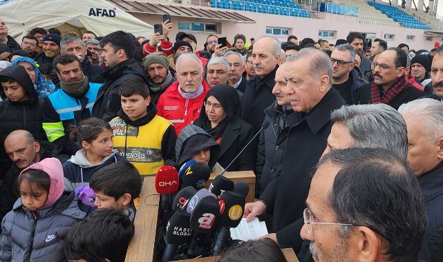 Şu ana kadar 94 ülkeden yardım teklifleri geldi. Milletimiz şahittir ki, bakanlıkları belediyeleri tüm kurumları hangi görüşten olursa olsun, vatandaşlarımızın her biri depremzelerimizin yanında olmak için var gücüyle yanlarında olmuştur. Bir yıl içinde bu binaları elimizdeki tip projelerle sahiplerine tespit edeceğiz.