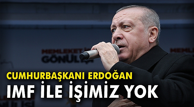 Erdoğan, burada yaptığı konuşmada, "Şu anda bizim IMF'ye borcumuz yok, orayla da işimiz yok." dedi.