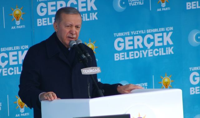 "780 bin metrekare nazarımızda aynıdır"Konuşmasını sürdüren Erdoğan, “Şehrinizin eksiklerini giderme, ihtiyaçlarını karşılama, sorunlarına çözüm bulma noktasında çok daha fazlasını yaptığımızı sizler zaten biliyorsunuzdur, şunu lütfen unutmayın: Bizim siyasetteki gayemiz mensubu olmaktan şeref duyduğumuz, aziz milletimize aşkla hizmettir. 81 vilayetin tamamı, 780 bin kilometrekarenin tamamı bizim nazarımızda aynıdır, eşittir. Biz Türkiye’yi bir bütün olarak kalkındırmanın, büyütmenin, yüceltmenin çabasındayız. Tüm bu mücadeleyi koltuk veya siyasi ikbal uğruna değil, evlatlarımıza daha müreffeh, daha güçlü ve itibarlı bir Türkiye bırakmak için yapıyoruz. Biz ne diyoruz ‘Biz bu millete efendi olmaya değil, hizmetkar olmaya geldik’ elbette her fani gibi bizlerin de eksiği, hatası, gücünü aşan sebeplerle ortaya çıkan bazı eksiklikler olabilir. Gün olacak bizler de emaneti sahibine teslim edeceğiz. İşte kızımız kadın kollarında başkan yardımcısıydı. Dün emanetini sahibine teslim etti. Ben de yetişirsem cenazesine gideceğim. Yol arkadaşımız, dava arkadaşımız bu kardeşimizin cenazesine katılmak bizler için bir görev. Devletimizin bekası, milletimizin huzuru, evlatlarımızın aydınlık yarınları için döktüğümüz terin tanığı 85 milyonun her bir ferdidir: 31 Mart’ta Tekirdağ’da artık bir yola ama yepyeni bir yola girelim diyorum. Öyleyse ne yapacağız. Şu 50 günde çok çalışmaya var mıyız? Tekirdağ, CHP’nin korku siyasetine kurduğu, esersizlik siyasetine mecbur değildir, mahkum değildir. Tekirdağ, gelişme ve ilerleme yerine CHP’nin beceriksiz yönetimi altında hayatta kalma mücadelesi vermeye mahkum değildir. Tekirdağ’da muhalefetin sömürdüğü sahte ve sanal kaygılar hizmetin önüne artık geçmemelidir. Tekirdağ, mevcut durumdan çok daha iyisini hak ediyor. Tekirdağ, Büyükşehir kimliğine uygun hizmetleri artık fazlasıyla hak ediyor. Gelin hep birlikte Tekirdağ’ın içine düştüğü bu dehlizden çıkaralım. Gelin Tekirdağ’ı Cumhur İttifakı’nın gerçek belediyecilik vizyonuyla buluşturalım. Bu konuda şehrimize her açıdan çağ atlatacak güçlü bir kadro kurduk. Başka hesaplar peşinde koşmadan sadece hizmet edecek, her anınızda hep yanınızda olacak isimleri aday olarak belirledik. Geçtiğimiz günlerde tüm adaylarımızın tanıtımı yapıldı. Biz belediye başkan adaylarımızın tamamına güveniyoruz, inanıyoruz. Kararlıyız ve kazanacağız. Tekirdağ’ın tercihinin de başta büyükşehir olmak üzere inşallah bu sefer Cumhur İttifakı’nın yanında olmasını temenni ediyorum. Büyükşehir ve ilçe belediye başkan adaylarımızı sizlere emanet ediyorum. 31 Mart akşamı Tekirdağ’dan müjdeli haberler bekliyorum. Tekirdağ, 31 Mart’ta gerçek belediyeciliği tercih ediyor muyuz? 31 Mart’ta Cumhur İttifakı’na destek veriyor muyuz? Rabbim yolumuzu, bahtımızı açık etsin. Rabbim bizi utandırmasın, mahcup etmesin” diyerek konuşmasını noktaladı.