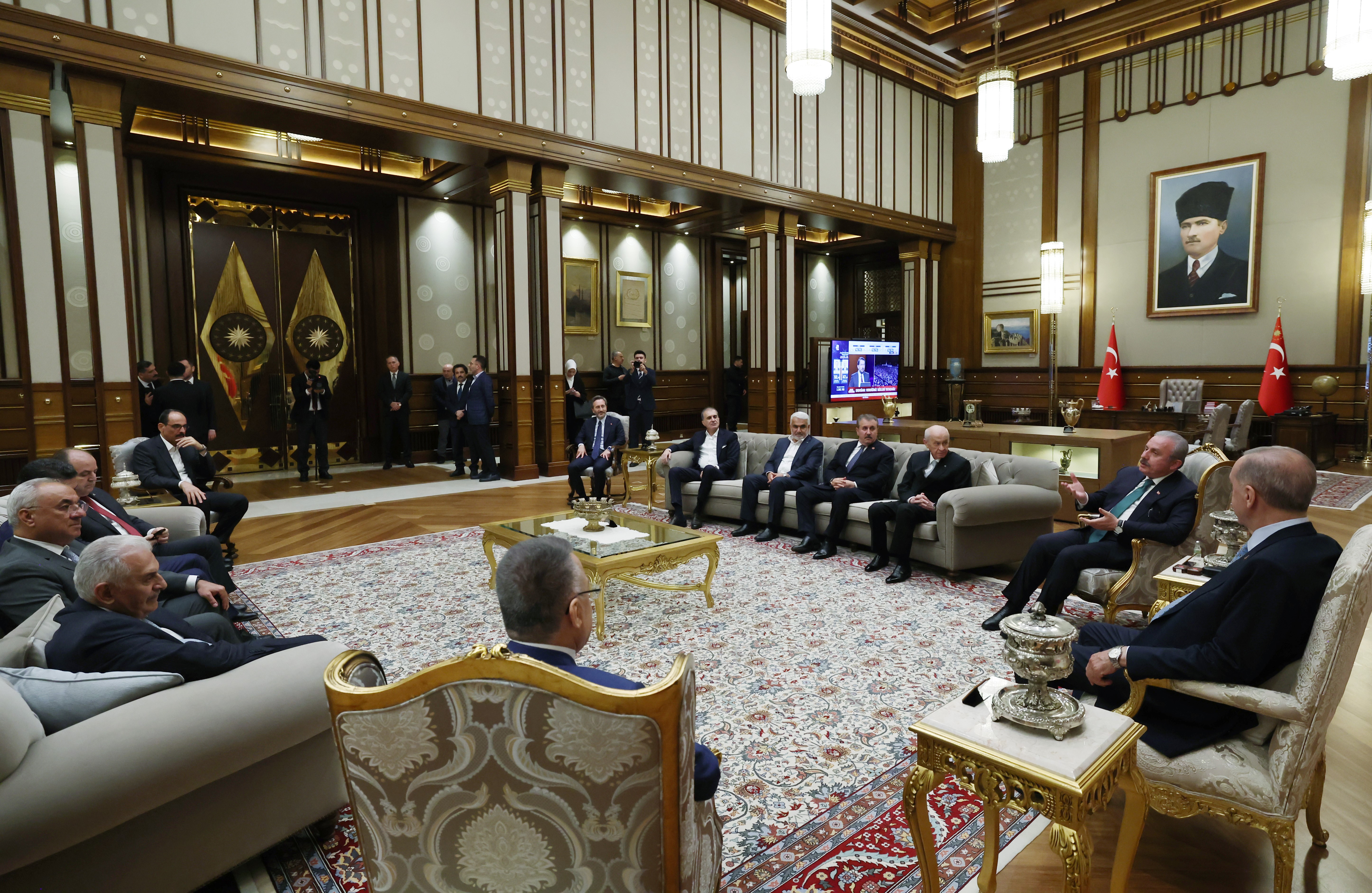 Erdoğan'ın konuşmasının ardından Cumhur İttifakı'nı oluşturan partilerin genel başkanları da sahneye davet edildi. Cumhurbaşkanı Erdoğan, seçim zaferi dolayısıyla birçok ülkenin liderinden tebrik telefonu aldı. Programına Cumhurbaşkanlığı Külliyesi'nde devam eden Erdoğan, TBMM Başkanı Mustafa Şentop, MHP Genel Başkanı Devlet Bahçeli, Büyük Birlik Partisi Genel Başkanı Mustafa Destici, DSP Genel Başkanı Önder Aksakal, HÜDA-PAR Genel Başkanı Zekeriya Yapıcıoğlu, AK Parti Sözcüsü Ömer Çelik, AK Parti Genel Başkanvekili Binali Yıldırım'ı kabul etti. Görüşmede, Cumhurbaşkanı Yardımcısı Fuat Oktay, İletişim Başkanı Fahrettin Altun, Cumhurbaşkanlığı Sözcüsü İbrahim Kalın da yer aldı.