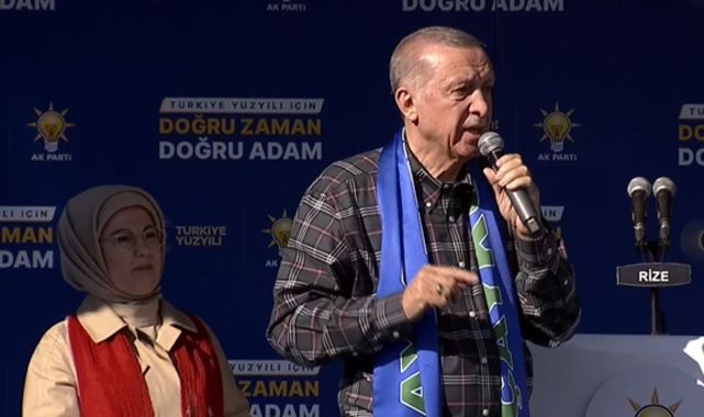 Memleketi Rize'ye en son bir yıl önce 14 Mayıs 2022 tarihinde Rize-Artvin Havalimanı'nın açılışı için gelen Cumhurbaşkanı Recep Tayyip Erdoğan, yaklaşık bir yıl aradan sonra Rize'ye geldi. Rize-Artvin Havalimanı'ndan helikopterle il merkezine gelerek Cumhuriyet Meydanı'nda hemşehrilerine seslenen Erdoğan, konuşmasının başında kendisini izlemeye gelen bir vatandaşın rahatsızlanması üzerine tedavisi için doktoruna talimat verdi.“Ana ocağım baba yurdum, ata toprağım Rize'yi gönülden selamlıyorum” diyerek konuşmasına Başlayan Erdoğan, “Rabbime hamdolsun şu muhteşem katılıma bakın. Siyasette bugüne kadar Rize'mde böyle bir katılım görmemiştim. Bugün bir başka. Bu 14 Mayıs'ın müjdesidir. İnşallah sandıklar patlıyor mu? Bunun için benim hemşehrim, kardeşlerim kapı kapı dolaşmaya var mı? 14 Mayıs'ta inşallah bir başka müjdeyi Rize'den alacağız. Buradan, bu muhteşem meydandan Rize'nin çalışkan, mert Karadeniz insanlarını selamlıyorum. Sizlere aşığım. Sizleri seviyorum. Sevmemek mümkün mü? Sizler gibi hemşehrilere sahip olup ta gururlanmamak mümkün mü? Şair ne güzel anlatmış Rize'yi. Cennetten yüklemişler tekneye getirip kondurmuşlar buraya Rize'yi, oy deniz Karadeniz, ay doğar yaylara, Rize şahidim olsun düştüğün sevdalara. Sevdasına düştüğüm Rize'yi siz değerli insanları, kardeşlerimi saygıyla selamlıyorum” ifadelerini kullandı.