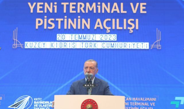Cumhurbaşkanı Recep Tayyip Erdoğan, Birleşik Arap Emirlikleri ziyaretinin ardından 20 Temmuz Barış ve Özgürlük Bayramı ile Yeni Ercan Havalimanı’nın açılış töreni için geldiği KKTC’de temaslarına başladı. Cumhurbaşkanı Erdoğan, Yeni Ercan Havalimanında düzenlenen resmi törenin ardından Yeni Ercan Havalimanı’nın açılış törenine katıldı.KKTC Cumhurbaşkanı Ersin Tatar ile adanın en büyük havalimanı olan Ercan Havalimanı’nın açılışını yapan Erdoğan, “Ercan Havalimanımızın yeni terminalinin ve pistinin açılışını sizlerle birlikte yapmaktan büyük bir memnuniyet duyuyorum. Kıbrıs Türkü’nün adadaki varlığının iyi olduğunu dosta düşmana haykırdığımız Barış Harekatı'nın 49’uncu yıl dönümünü bu vesileyle yürekten tebrik ediyorum. 3 Şubat 1975 tarihinde sivil hava trafiğine açılan Ercan Havalimanı 20 bin metrekarelik terminal binasına 34 bin metrekarelik otopark alanına ve 2 bin 755 metre uzunluğunda ana piste sahipti” dedi.