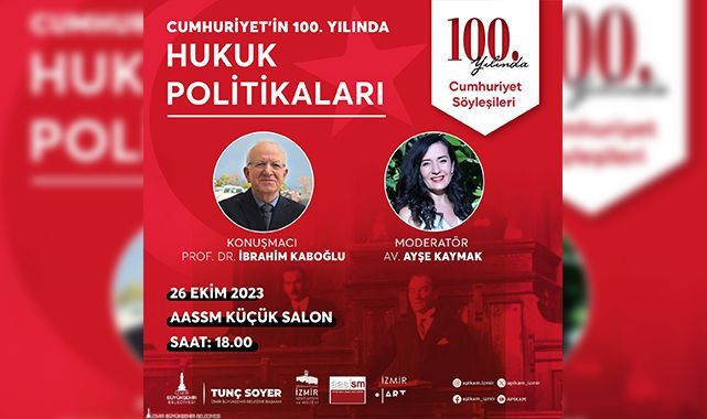 İzmir Büyükşehir Belediyesi Kent Arşivi, Müzeler ve Kütüphaneler Şube Müdürlüğü, Cumhuriyet’in 100. yılı kutlamaları kapsamında “Cumhuriyet Söyleşileri”ne başlıyor. 5 ay sürecek söyleşilerin ilki 26 Ekim’de Ahmed Adnan Saygun Sanat Merkezi Küçük Salon’da Prof. Dr. İbrahim Özden Kaboğlu’nun katılımıyla yapılacak. “Cumhuriyet’in 100. Yılında Hukuk Politikaları” başlıklı söyleşinin moderatörlüğünü Avukat Ayşe Kaymak üstlenecek.