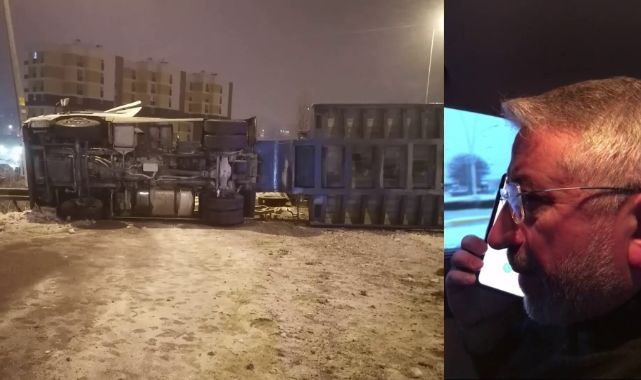 Çorum Belediyesi’ne ait çekici tır, ekskavatörü deprem bölgesine ulaştırmak üzere dün akşam saatlerinde Çorum’dan yola çıktı. Mustafa Kaya’nın kullandığı tır, Kayseri Pınarbaşı Kavşağı’nda yoldaki buzlanma nedeniyle kontrolden çıkarak devrildi. Tır sürücü Mustafa Kaya kazadan yara almadan kurtulsa da iş makinesini deprem bölgesine ulaştıramamış olmanın büyük üzüntüsünü yaşadı.