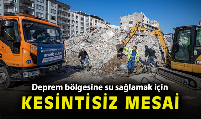 İzmir Büyükşehir Belediyesi İZSU Genel Müdürlüğü, 6 Şubat depremlerinin içme suyu altyapısına büyük hasar verdiği şehirlerin su idareleriyle birlikte bölgeye su ulaştırmak için çalışıyor. İZSU bölgedeki çalışmalar için ekip, ekipman ve malzeme desteği sağlıyor.