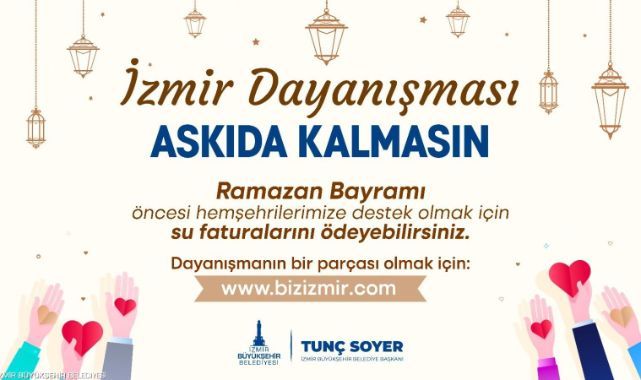 İzmir Büyükşehir Belediye Başkanı Tunç Soyer, “İzmir'de dayanışma lafta da kalmaz, askıda da... Haydi hemşehrilerim, Ramazan Bayramı'na hepimiz mutlu girelim” dedi.