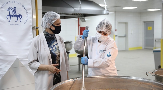 SOSYAL SORUMLULUĞUMUZU YERİNE GETİRİYORUZProje ile Türk mutfaklarının geleneksel lezzetlerinin ihtiyaç sahibi vatandaşlara dağıtılacağını söyleyen DEÜ Rektörü Prof. Dr. Nükhet Hotar, “Geçen sene tüm tadilatlarını bitirdiğimiz ve adeta bir ameliyathane titizliğine sahip mutfağımızda hem öğrencilerimize hem personelimize en sağlıklı yiyecekleri sunuyoruz. Bugün de ihtiyaç sahibi vatandaşlarımıza yönelik sosyal sorumluluklarımızı yerine getirmek için İzmir Valiliğimiz, Türk Kızılayımız ve STK’larımızla uluslararası hijyen koşullarına sahip DEÜ Sosyal Tesisler Yemekhanesi’nde bir araya geldik. Gastronomi ve Mutfak Sanatları bölümü öğrencilerimizin de katkılarıyla hazırlanan tatlılarımızı, ihtiyaç sahibi vatandaşlarımıza dağıtacağız. Devletimizin üniversitemize verdiği imkanlar çerçevesinde ihtiyaç sahibi vatandaşlara sunduğumuz hizmetlerimiz geçmişte olduğu gibi gelecekte de devam edecek. Projeye katkı sunan İzmir Valiliğimize, Türk Kızılay’a, STK’lara teşekkür ediyoruz” diye konuştu. “Dünümüzle Yarınımızla Bu Hayatta Birlikteyiz Projesi”ne, İnsan Eğitim Kültür Yardımlaşma ve İzmir Gıda Bankası Derneği (İNSAN-DER) ile Hizmet Ehli Roman Derneği de destek verdi.