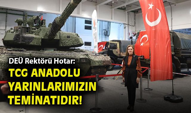 “GÜVEN VERİCİ”Açıklamalarını sürdüren Rektör Hotar, şunları kaydetti: “TCG Anadolu önce İstanbul'daydı. Oradan yola çıkıp Çanakkale Şehitliğimizi selamladı ve şimdi güzel İzmir'imizde. Tüm vatandaşlarımız gibi bizler de eserimizle gurur duyduk. Yapım aşamasından suya indirildiği aşamaya kadar bu devasa gemimizi takipteydik. Umarım kullanmak için mecbur kalmayız ancak ihtiyacımız olduğunda ülkemizin böylesi bir askeri üstünlüğünün, savunma kabiliyetinin olduğunu bilmek güven veriyor. Tekrardan başta muhterem Cumhurbaşkanımız Recep Tayyip Erdoğan olmak üzere, TCG Anadolu’yu Türk Deniz Kuvvetlerimizin envanterine kazandıranlara ve emeği geçen herkese teşekkür ediyorum” ifadesinde bulundu. İzmir ve çevre illerden birçok vatandaşın TCG Anadolu’yu yakından görebilmek için uzun kuyruklar oluşturduğu günde DEÜ Rektörü Prof. Dr. Nükhet Hotar’a ziyaretinde, akademik iş birlikleri için İzmir’de bulunan Azerbaycan Milletvekili ve Azerbaycan Diller Üniversitesi Rektör Yardımcısı Tamam Cafarova, Azerbaycan Diller Üniversitesi’nden Coşgun Dadaşov, DEÜ Genel Sekreteri Engin Basmacı ve DEÜ Dış İlişkiler Koordinatörü Prof. Dr. Olgun Çiçek eşlik etti.TCG ANADOLU HAKKINDATCG Anadolu, Türk Deniz Kuvvetleri için bir komuta merkezi ve amiral gemisi görevi görürken; Türk Silahlı Kuvvetlerinin uzun süreli muharebe, uzun mesafeli askerî muharebe veya insani yardım operasyonları gibi çeşitli ihtiyaç ve gereksinimleri karşılayabilmekte.TCG Anadolu, uçuş güvertesinde 10 helikopter veya 11 SİHA, hangarında ise 19 helikopter veya 30 SİHA konuşlandırabilen, araç güvertesinde ise 13 tank, 27 zırhlı amfibi hücum aracı (ZAHA), 6 zırhlı personel taşıyıcı, 33 muhtelif araç, 15 römork olmak üzere toplamda 94 araç taşıyabiliyor.