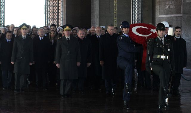 Türkiye Cumhuriyeti'nin kurucusu Ulu Önder Mustafa Kemal Atatürk, ebediyete intikalinin 84'üncü yılında Anıtkabir'de düzenlenen törenle anıldı. Anıtkabir'deki tören, saat 08.50'de devlet erkanının Aslanlı Yol'da yürümesiyle başladı. Cumhurbaşkanı Erdoğan başkanlığındaki kortejde TBMM Başkanı Mustafa Şentop, Cumhurbaşkanı Yardımcısı Fuat Oktay, CHP Genel Başkanı Kemal Kılıçdaroğlu, MHP Genel Başkanı Devlet Bahçeli, İYİ Parti Genel Başkanı Meral Akşener, Cumhurbaşkanlığı Kabinesi üyeleri, yüksek yargı organlarının başkanları, Genelkurmay Başkanı Orgeneral Yaşar Güler ve kuvvet komutanları yer aldı. Cumhurbaşkanı Erdoğan, kırmızı ve beyaz karanfillerden oluşan ay yıldızlı çelengi Atatürk'ün mozolesine bıraktı. Atatürk'ün 84 yıl önce vefat ettiği saat olan 09.05'te saygı duruşunda bulunularak, İstiklal Marşı okundu. Saygı duruşu sırasında gönderdeki Türk bayrağı da yarıya indirildi. Cumhurbaşkanı Erdoğan ve beraberindeki devlet erkanı, daha sonra Misak-ı Milli Kulesi'ne geçti. Erdoğan, burada Anıtkabir Özel Defteri'ni imzalayarak şunları yazdı: