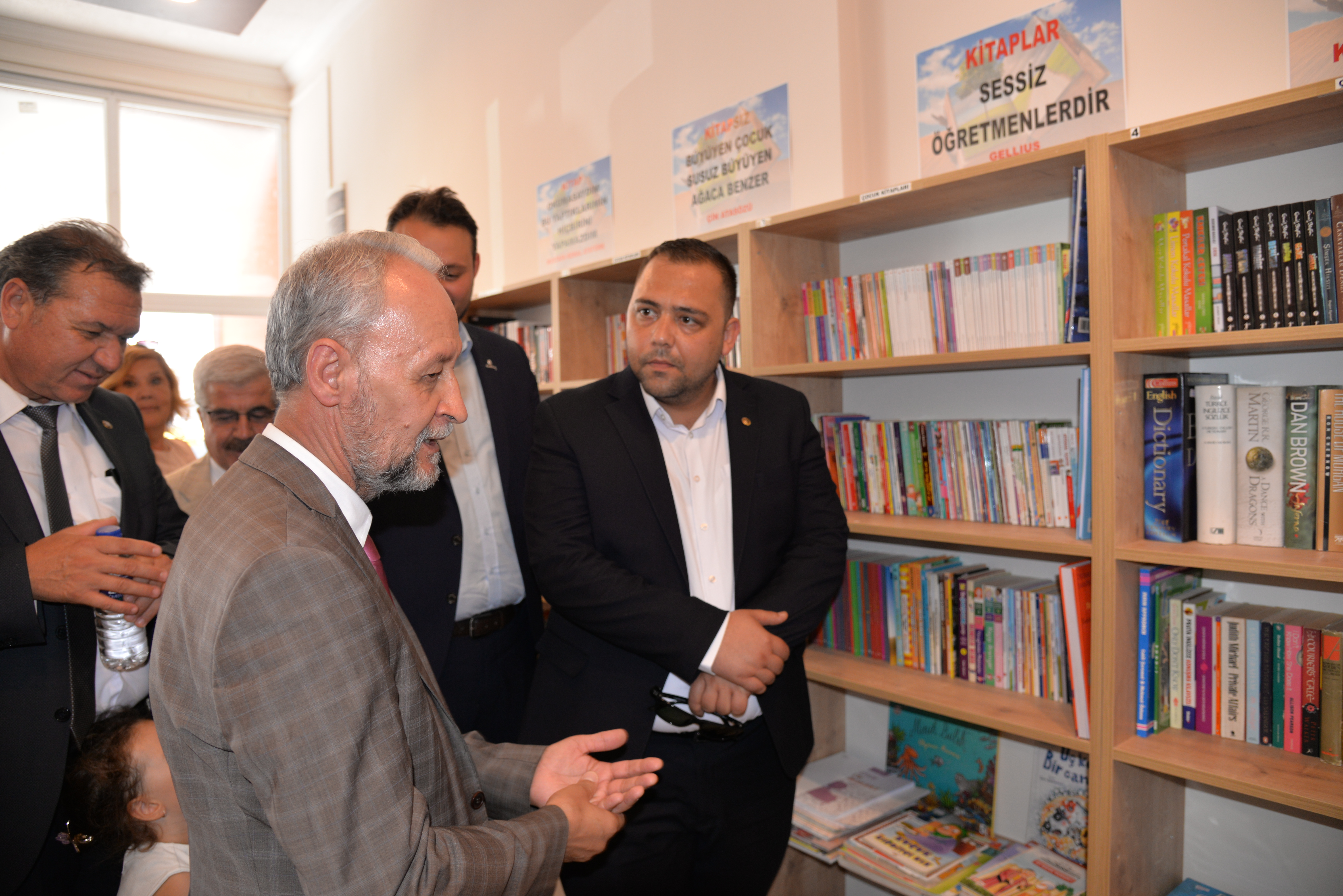 Menemen Belediye Başkanı Serdar Aksoy olmak üzere kütüphanenin oluşturulmasında