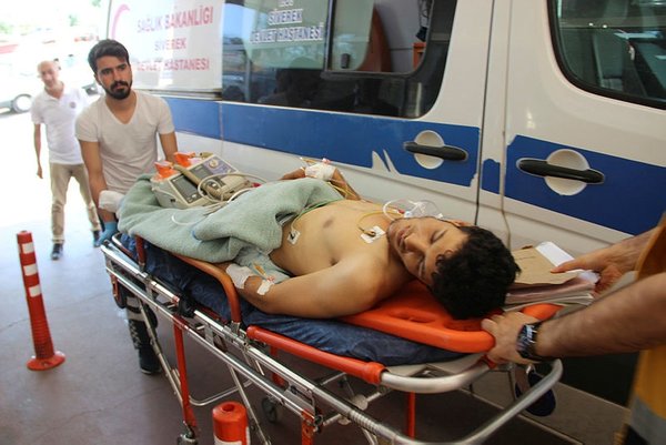 SAĞLIK DURUMU CİDDİYETİNİ KORUYORBurada ilk müdahalesi yapılan işçi, daha sonra Şanlıurfa Mehmet Akif İnan Eğitim ve Araştırma Hastanesine kaldırıldı. Burada tedavi altına alınan yaralının sağlık durumunun ciddiyetini koruduğu öğrenildi.Olayla ilgili soruşturma sürüyor.