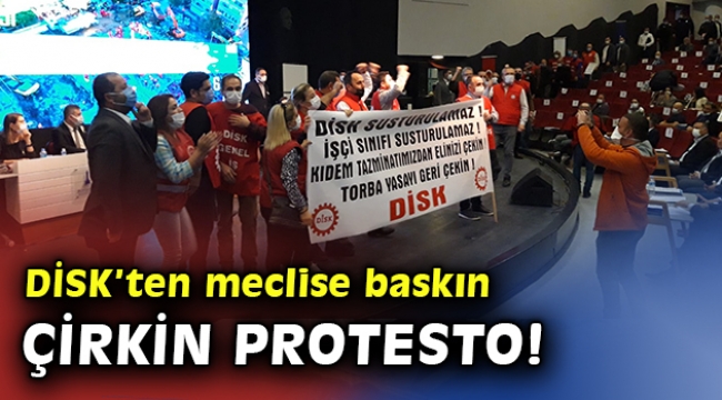 DİSK'ten deprem için toplanan İzmir Büyükşehir Meclisine baskın