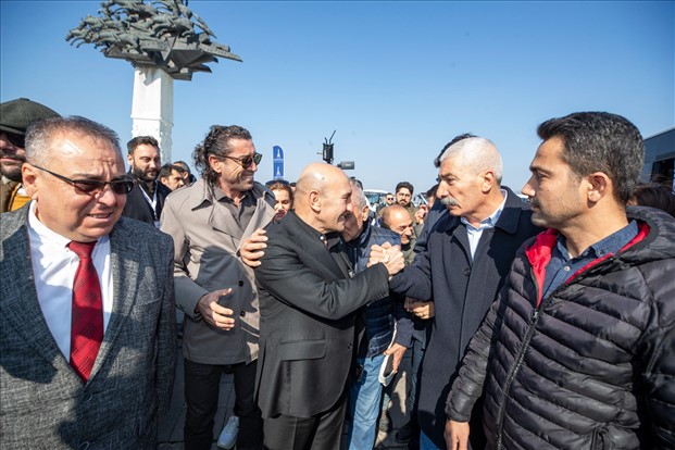 İşte biz bu şehirde dev yatırımlarımızı, İzmir’den 40 alıp 1 veren bu zihniyete rağmen gerçekleştirdik. Yatırımlarımızın her bir katresinde, her adımında sarayın değil, halkın alın teri vardır. Kimseye eyvallahı olmayan, kimsenin önünde el bağlamayan alnı ak, başı dik İzmir'in gücü vardır... Mustafa Kemal'in evlatlarının yüreği vardır.İyi ki bu şehir için aşkla çarpan 4 buçuk milyon yürek var. İyi ki beş yıl sizlerle omuz omuza yürüdük. İyi ki varsınız'' diye konuştu. ''NAKİT ÖDEME BİTTİ, İZMİRİM KART AVANTAJLARIYLA KAVUŞTURDUK''Soyer konuşmasında,''Göreve geldiğimizde, şehrimizdeki deniz ulaşımının kent içi ulaşımdaki payı ne yazık ki oldukça düşüktü. Bu eksiği gidermek ve şehrimizin doğayla uyumlu ulaşım altyapısı için önemli adımlar attık. Ölümsüzleşen Fethi Sekin ve Uğur Mumcu isimlerini verdiğimiz iki arabalı feribot satın aldık. İki tanede de kiraladık. Böylece Deniz filomuzu büyüttük, sefer sayılarımızı artırdık. Kent çeperinin dışında kalan ilçelerimizi, entegre toplu ulaşım ağına dahil etme yolunda devrim niteliğinde bir projeye de imza attık. İZTAŞIT’ı hayata geçirdik. Kooperatif temelli bu proje ile bireysel toplu taşımacıları tek çatı altında buluşturduk. ESHOT denetimli toplam 196 İZTAŞIT aracımızla Seferihisar, Kiraz, Menemen, Foça, Ödemiş ve Bergama’da hemşerilerimize hizmet veriyoruz. Nakit ödeme dönemini bitirdik. 7’den 70’e vatandaşlarımızı İzmirim Kart avantajlarına kavuşturduk'' dedi.