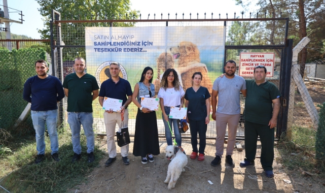 Efes Selçuk Belediyesi hayvan barınağından köpek sahiplenen vatandaşlar, 4 Ekim Dünya Hayvanları Koruma Günü'nde anlamlı bir çağrı yaptı: “Satın almayın, sahiplenin!”