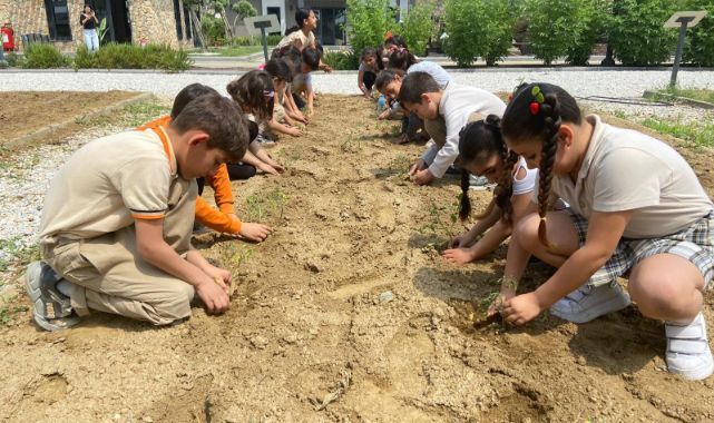 Efes Selçuklu çocuklar fideleri toprakla buluşturuyor