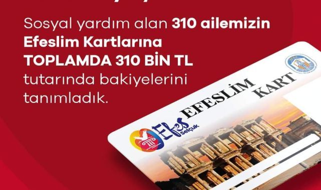 Efes Selçuk Belediyesi’nin sosyal yaşam kartı Efeslim Kart aracılığıyla sosyal destek alan 310 ailenin bakiyeleri yüzde 100 artırılarak 1000 TL olarak güncellendi. Böylece sosyal yardım alan 310 ailenin Efeslim Kartlarına toplamda 310 bin TL olarak güncellendi. Güncellenen tutar ile Efeslim Kart sahipleri anlaşmalı esnaflardan temel ihtiyaç maddelerini kartlarındaki bakiye tutarınca satın alabilecekler.