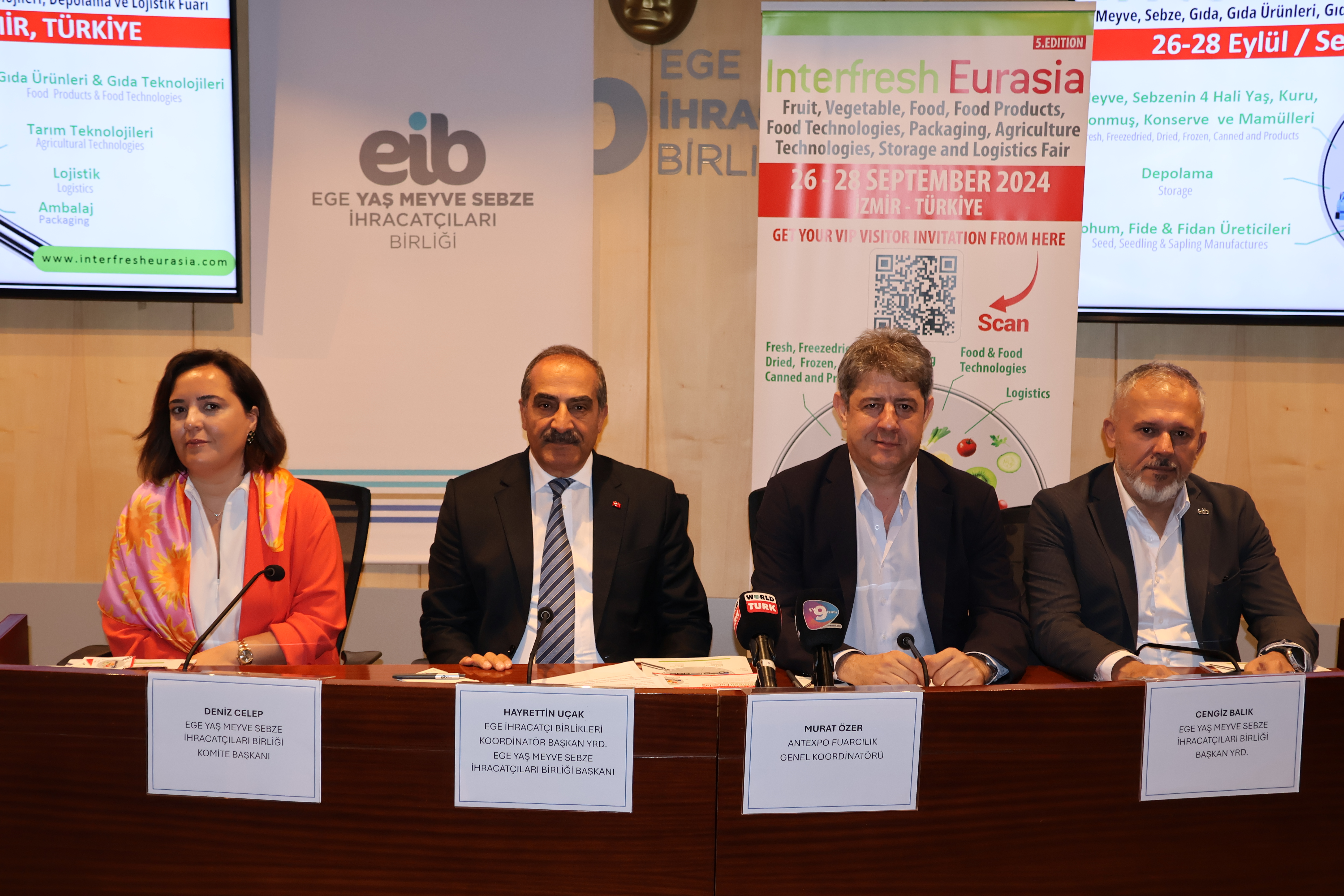 Bu yıl 5. Kez 26-28 Eylül 2024 tarihlerinde Türkiye’nin en büyük fuar alanı Fuarİzmir’de düzenlenecek olan Interfresh Eurasia Fuarı Tanıtım Toplantısında konuşan Ege İhracatçı Birlikleri Koordinatör Başkan Yardımcısı ve Ege Yaş Meyve Sebze İhracatçıları Birliği Başkanı Hayrettin Uçak, sektörlerinin tek fuarı konumundaki Interfresh Eurasia Fuarı’nı çok önemsediklerini paylaştı.İnterfresh Eurasia Fuarı’nın, bugüne kadarki yolculuğuyla uluslararası düzeyde önemli bir marka haline geldiğinin altını çizen Başkan Uçak, “İnterfresh Fuarı’nın, fuarlar kenti İzmir’e ve sektörümüze uzun yıllar hizmet edeceğine, gücümüze güç katacağını düşünüyorum ve çok mutlu ve gururlu olduğumu ifade etmek istiyorum. Fuarda temsil edilen sektörler olarak Türkiye genelinde 7,8 milyar dolar, Ege Bölgesi’nde 2,4 ihracat gerçekleştiriyoruz. 2028 yılında Türkiye genelinde 10 milyar dolar, Ege Bölgesi’nde 3,5 milyar dolar ihracat hedefine ulaşmada İnterfresh Eurasia Fuarı büyük katkı sağlayacak” şeklinde konuştu.Ege İhracatçı Birlikleri’ni 2023 yılında yaptığı 18,3 milyar dolarlık ihracatın yüzde 40’ına tekabül eden 7,3 milyar dolarlık ihracatı tarım sektörlerinin gerçekletirdiğini dillendiren Başkan Uçak şöyle devam etti: “Bu rakamlar Türkiye’nin tarımsal ürün konusunda liderliğini ortaya koyuyor. Ege Bölgesi ve İzmir’de bu fuarın düzenlenecek olmasının da çok yerinde bir karar olduğu ortaya çıkıyor. Bu sene stand satışlarının ikiye katlanmış olması da bunun en güzel ıspatı. Interfresh Eurasia Fuarı’nın uzun yıllar Ege Bölgesi lezzetlerinin vitrini olması için desteğimiz sürecek.”Meyvenin dört hali fuarda yer alacakTürk meyve sebze sektörlerinin vitrini konumundaki Interfresh Eurasia Fuarı’nda 2024 yılında meyvenin taze, kurutulmuş, dondurulmuş ve konserve olmak üzere 4 halinin temsil edileceğini dillendiren Antexpo Fuarcılık Genel Koordinatörü Murat Özer, Ege Bölgesi’nin 4 sektörde de çok güçlü olduğu için bu kararı aldıklarını dile getirdi. 15 market zinciri şimdiden Interfresh Fuarına ziyaretçi olarak kayıtlarını yaptırdıAntexpo Fuarcılık Genel Koordinatörü Murat Özer, 2023 yılında 9 olan uluslararası ziyaretçi market zincirleri sayısının bu yıl fuara beş ay olmasına rağmen 15’e çıktığı bilgisini verdi. Özer, “Yalnızca market zincirleri değil yurt dışındaki büyük toptancılar, Halciler ve ticaret erbapları yani Traderlar’da bu yıl daha yoğun bir şekilde Interfresh Eurasia Fuarı için İzmir’de olacaklar” şeklinde konuştu.50'yi aşkın ülkeden alıcılar geliyor“İhracat projesi olarak başladığımız bu yolculukta geldiğimiz nokta başarılı olduğumuzun göstergesidir” diyen Özer, görüşlerini şöyle sürdürdü; “Interfresh Eurasia geçtiğimiz yıl 44 farklı ülkeden alıcıya ev sahipliği yapmıştı. Büyüyen yelpazesi ile, taze meyve sebze, dondurulmuş ürünler, kurutulmuş ürünler, konserve ürünleri, gıda ve gıda teknolojileri, paketleme ve ambalaj teknolojileri, soğuk hava sistemleri, lojistik ve sektörün tarım teknolojilerinin sergileneceği Interfresh Eurasia Fuarına 50’nin üzerinde ülkeden farklı büyüklüklerde “Alım Heyetleri” bekliyoruz. Bu tablo Interfresh Eurasia Fuarı’nın 7 yılda düzenlediği fuarların ne kadar başarılı bir geçmişi olduğunu ve sektörün bize olan güvenini gösteriyor.”7 yılda Interfresh kendi sektöründe dünya markasıInterfresh Eurasia Fuarı’nın 7 yılda kat ettiği yolculuk sonucunda meyve sebze sektöründe tanınan ve yabancı alıcılar tarafından Türkiye’de ziyaret edilecek fuarlar listesine alınan bir fuar haline geldiği bilgisini veren Özer; “Yurtdışında yapmış olduğumuz toplantılarda, gerek fuar ziyaretlerinde, gerek acentalarımız aracıyla, gerekse ticaret ataşeliklerimiz ile gerçekleştirdiğimiz toplantılarda Akdeniz çanağından mal alan bir çok alıcı Interfresh’in tarihini bildiğini ve Eylül ayında takvimlerine ziyaret programlarına aldıklarına şahit oluyoruz. Bu bizi çok sevindiriyor. Türkiye'nin de artık bu sektörde dünya fuar takvimine girmeyi başarmış bir fuarı var. En son Nisan ayında Yunanistan’da düzenlenen Freskon Fuarı’nda, Interfresh Fuarı’nın gücünü gördük” diyerek sözlerini noktaladı.Ege Yaş Meyve Sebze İhracatçıları Birliği Meyve Sebze Mamul Alt Komite Başkanı Deniz Celep, mamul firmalarının fuara katılım sağlamasının önemli olduğunu vurguladı.Fuarların ihracata olumlu katkı sağlaması yanında, kent ekonomilerine de katkı sağladığını vurgulayan Ege Yaş Meyve Sebze İhracatçıları Birliği Yönetim Kurulu Başkan Yardımcısı Cengiz Balık, yaş meyve sebze sektörünün de fuarların büyümesine destek olduğunu, fuarların gelen ithalatçı firmalara işletmelerini gösterme olanağı sunduğunu belirtti.