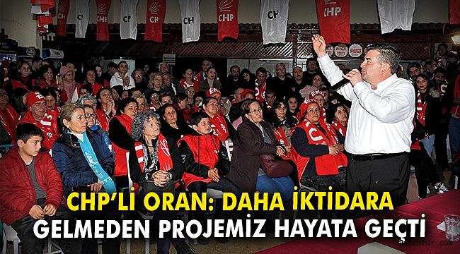 Seçim çalışmalarına başladığından beri, Çeşme Belediyesi Sağlık Polikliniği açacağını, adını da Çeşme Belediyesi'nde yıllarca Çeşmeliler'e sağlık hizmeti veren Dr. Tayfun Aydemir'in adını koyacaklarını ve polikliniğe Kardiyolog alacağını açıkladığını vurgulayan Oran, "Hastanemizi yapanlardan, yaptırılması için katkı sağlayanlardan da Allah razı olsun. Hastanenin yapılması sırasında, Meclis üyesi olarak benim de imzam var. Ama Çeşme'de kalp krizi geçirirsen, eğer şansın varsa Urla'ya yada İzmir'e yetişirsin. Bir kardiyolog, Çeşme için hayati önem taşıyor. Ben bu sorunu gündeme getirip, Belediye Sağlık Polikliniğinde çalışacak kardiyolog ile çözeceğimi söyleyince, hemen onlar da harekete geçtiler. Hastanemizin C sınıfı olan derecesini B derecesine yükselttiler. Yani daha Eko iktidara gelmeden projesi hayata geçmiş oldu. Hastaneye kardiyolog geliyor. İnandık mı? İnanmak istiyoruz. İnşallah hastanemize kardiyolog da, beyin cerrahı da, yoğun bakım da gelir" dedi.