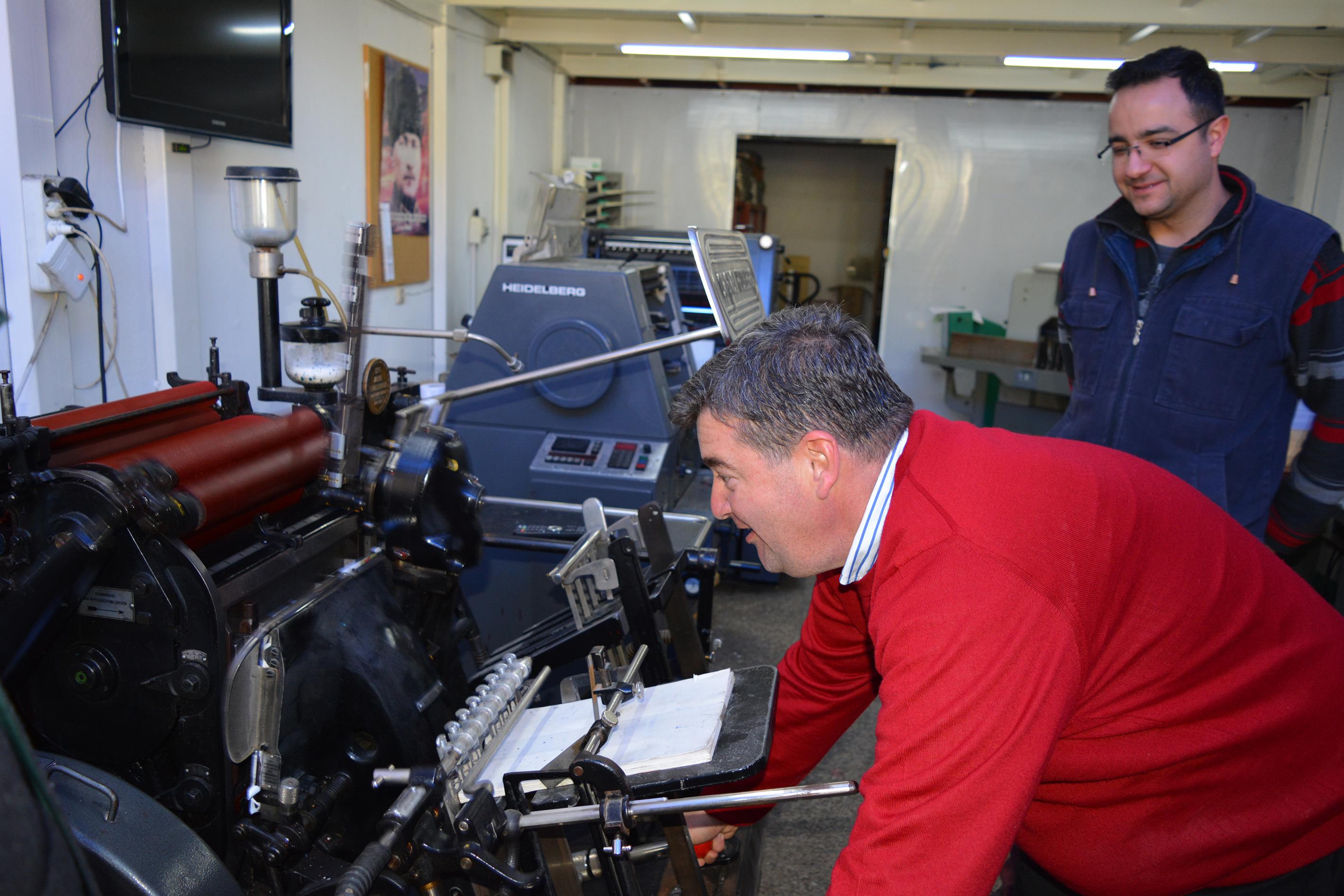 Kendisi de matbaacı olan Belediye Başkan Adayı Ekrem Oran, sanayi sitesindeki bir matbaayı da ziyaret ederek, matbaa makinesinde bir süre çalıştı.